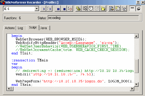 完成上述设置后,点击“OK”后,SilkPerformer就会启动脚本记录器就开始录制脚本。
