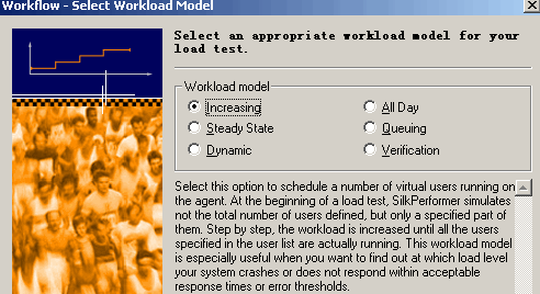 在负载测试之前,必须选择负载测试的压力模式。可以在Increasing,Steady,Dynamic,All Day,Queuing,Verification六个不同的压力模式之间选择。