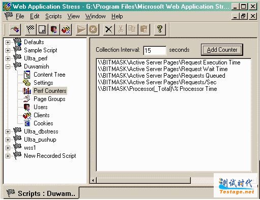 下载的。WAS要求Windows NT 4.0 SP4或者更高,或者Windows 2000。为了对网站进行负载测试,WAS可以通过一台或者多台客户机模拟大量用户的活动。WAS支持身份验证、加密和Cookies,也能够模拟各种浏览器类型和Modem速度,它的功能和性能可以与数万美元的产品相媲美。如果你对WAS和Microsoft的另外一个测试工具Web Capacity Analysis Tool (WCAT)之间的差别感兴趣,可以访问Microsoft Web工具的比较页面。