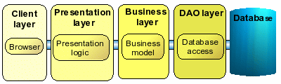 ◆业务层包含更多高级业务服务。理想状态下,业务层相对独立于数据库实现。这一层常常用到EJB事务。