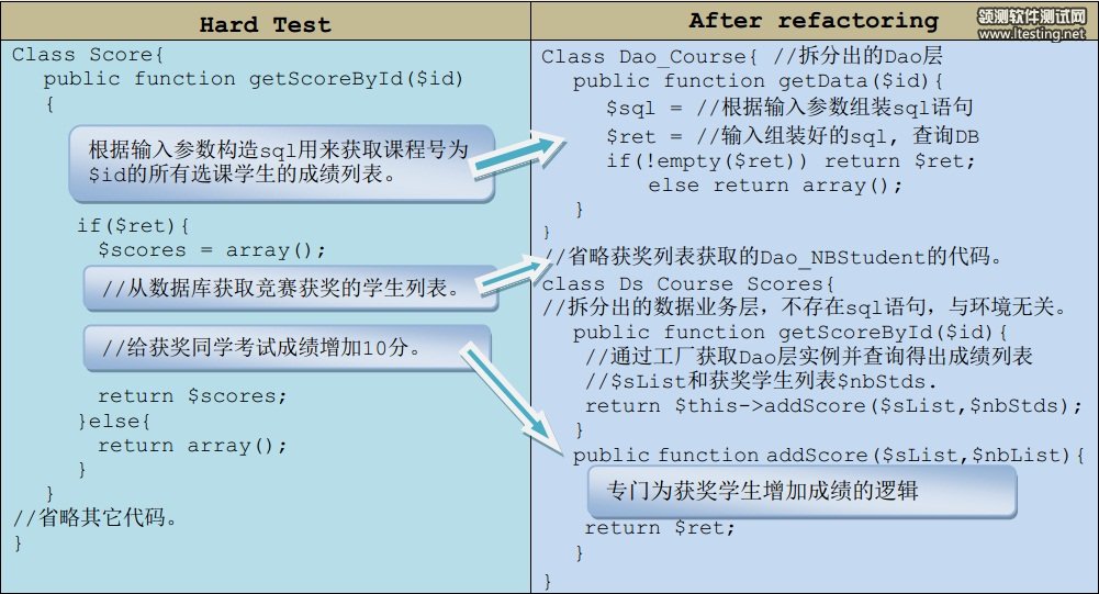 如果从设计上按分层思想将代码划分:把数据获取放入一层,把数据处理放入另一层。不同层次的职责不同,所关注的内也容不同,数据获取层只关注如何把需要的数据从DB,或是文件系统中获取;数据处理层只关注数据处理的逻辑,不用关心数据是哪里来的,这样从设计上将关注点分离,使代码的耦合性自然降低,可测性也就提高了。