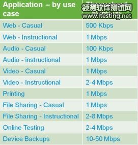 带宽估计:发布会要保证参与者能正常使用比较轻量级的互联网应用,最基本每个设备要分配500kbps的可用带宽。在这个基础上要考虑大型活动的特点。如果是新闻发布会,那么会有很多人上传视频,带宽分配需要重新考虑,每个人至少有一个设备应保证1Mbps带宽。如果是小组讨论会,那么带宽需求就会小得多。下图是一些典型应用通常需要的带宽。