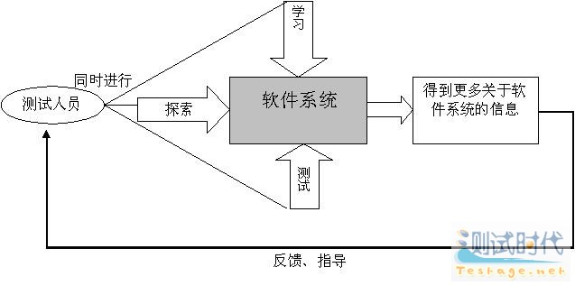 在对测试对象进行测试的同时学习测试对象并设计测试,在测试过程中运用获得的关于测试对象的信息设计新的更好的测试。这个有趣的过程如下图所示。