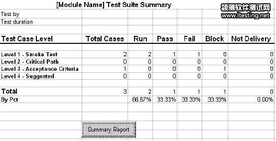 不足之处:测试变更跟踪不方便,每个测试用例的规模不等,所以测试覆盖率结果只是作为参考,结果百分比不能精确反映工作量,需要具体分析项目情况。这个模版没有跟踪统计缺陷,同时考虑是否使用加权评估缺陷严重性,一个测试用例往往对应几个缺陷的统计分析。