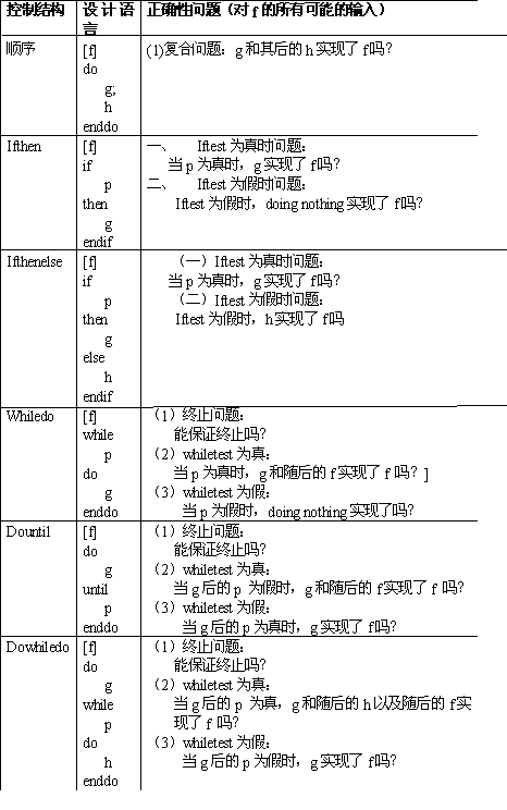 在表中,分析了对应的控制结构中的执行路径后,就可以确定正确性问题了.对顺序结构,惟一的路径是h跟随g,所以正确性问题就是:这些功能结点必须执行这个结构的预期函数?.