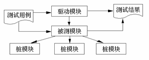 被测模块、与它相关的驱动模块及桩模块共同构成了一个“测试环境”,见图1。