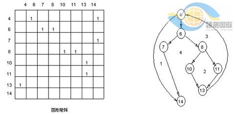 利用图形矩阵可以实现自动地确定一个基本路径集。一个图形矩阵是一个方阵,其行/列数控制流图中的结点数,每行和每列依次对应到一个被标识的结点,矩阵元素对应到结点间的连接(即边)。在图中,控制流图的每一个结点都用数字加以标识,每一条边都用字母加以标识。如果在控制流图中第i个结点到第j个结点有一个名为x的边相连接,则在对应的图形矩阵中第i行/第j列有一个非空的元素x。