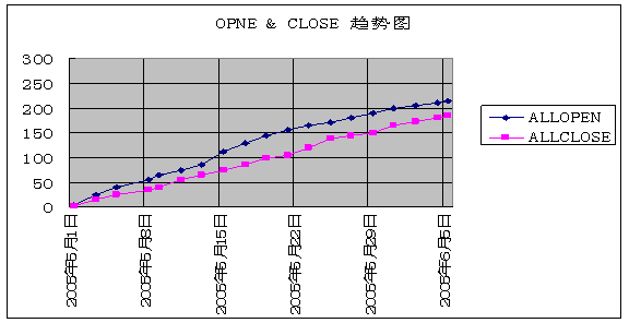 在此推荐一种Open & Close 趋势图,它绘制简单,容易看出一些问题,适合测试经理和高层领导及时了解某一产品的软件测试情况。