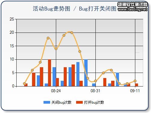 2.打开bug次数和关闭bug次数。每新增1个bug或者是reopen一个bug,打开次数都会被记加一。每close一个bug,关闭次数会加一。