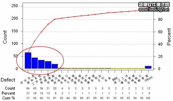 像上图,这是一个较为复杂的MIS系统,有近20个功能块。这个时候,可以利用柏拉图识别出占80%问题的那少数模块,针对其采取强于其它产品组成部分的质量控制措施。