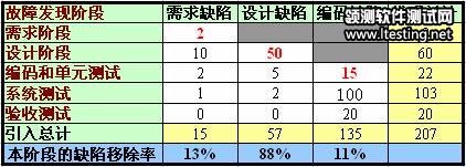 缺陷有发现阶段和引入阶段两个重要指标,发现阶段和引入阶段可以是软件生命周期的各个阶段,根据这两个阶段可以绘制出一个矩阵,从而分析出软件开发各个环节的开展质量,找到最需要改进的环节。