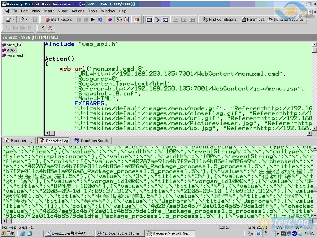 手动关联动态数据的复杂做法是,回放脚本,在Execution Log和Recoding Log打出的信息中找需要关联的动态数据及动态数据的左右边界。甚是麻烦,我没怎么看明白。其实每次回放脚本,Recoding Log打印的信息都是一样的,也和录制脚本的时候生成的\data\RecordingLog.txt文件的内容一样。下面直接使用\data\RecordingLog.txt文件,关联动态数据的时候不再需要回放脚本,减少了关联动态数据的工作时间。