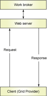 Web 服务的主要应用位置是在分发和代理的一端,也就是说,点单元被分布到网格中的客户机(提供者)上,这就是一种请求架构的例子,其中客户机从网格代理那里请求工作。