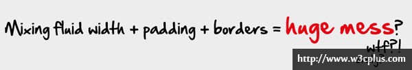 流体布局是方便,但是苦于的是,如果在设置了流体宽度值的元素上添加padding和border,那就凶险了,这个你懂的(css box module)有介绍: