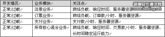 在测试场景设计中,应考虑准确模拟混合业务的并发操作,以及过载访问的情况,可借鉴下表中的思路进行测试: