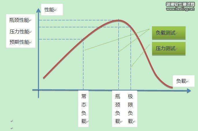 以下是对上述三种测试的图示。一般,常态负载低于瓶颈负载,从常态负载到瓶颈负载区间系统的承受能力可以看作是可扩展能力。当瓶颈负载小于等于常态负载时,说明该系统的性能没有满足预计要求,是存在问题的。探测常态负载与瓶颈负载的关系,正是负载测试所要完成的工作。压力测试则验证从系统到达瓶颈之后,继续持续加压时系统的表现。