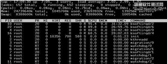 下面的案例表明,IRQ在CPU上的分配不够均衡,因为8个CPU,只有4个CPU有负载: