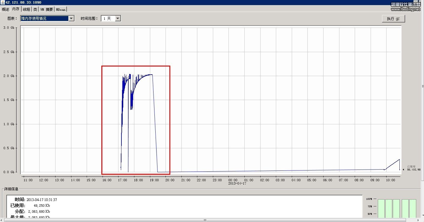 发现full gc 不完全 最后gc时间很长 初步判断内存泄漏 (这里欢迎大神们来拍砖)