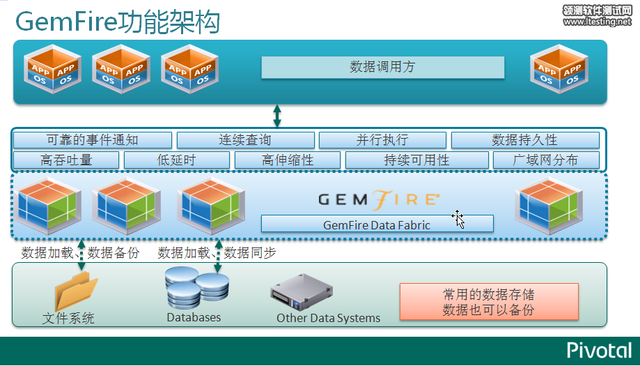 GemFire是Pivotal企业级大数据PaaS平台的一部分。Pivotal公司的企业级大数据PaaS平台主要有三个层次:云基础架构层Cloud Fabric、大数据基础架构层Data Fabric、应用开发基础架构层Application Fabric。GemFire属于大数据基础架构层,此外,Greenplum数据库也属于这一层;云基础架构层的技术是Cloud Foundry;应用开发基础架构层的技术是Spring Framework和RabbitMQ等。