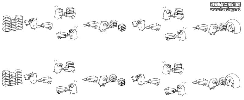 这种设计仍是并发,不是并行。[译者注:一只地鼠运一次上面那堆书,然后第二只地鼠再运一次下面那堆书。一次只允许一只地鼠运送,这样就不是并行的。]