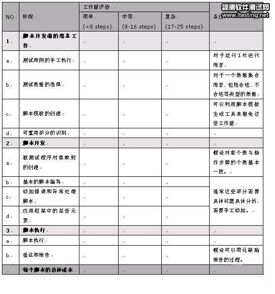 我们可以通过分析和评估,然后填写上面表格,从而得到每个脚本的总体成本。