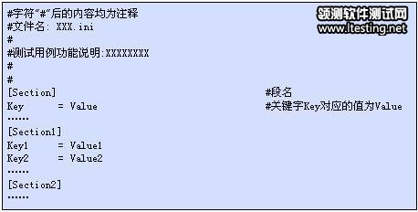 测试用例文件中存放测试用例初始化数据和测试完毕后的验证数据。数据的结构采用一般配置文件的格式,详见图2-2。