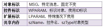Proxy接收用户命令,需要获取产品上某个控件的状态信息。通常情况下需要两个标识才能实现。具体表现为<对象标识,控件标识>。由于产品设计原因,现存在两种协议。我们采用Windows消息和共享内存实现命令的传输,所以下面协议的表达形式按SendMessage参数来进行。两种协议对不同的UI控件实现支持。