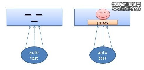 Proxy为产品进程内动态链接器,与产品工程同源,可以方便地引用产品当中的各种库和头文件,相当于产品的测试后门,理论上讲ProxyAgent可以协助测试发起任何产品支持的动作。ProxyAdapter为独立的适配器层,可独立编译,它向上为python提供接口,中间将命令信息进行转化,下层与进程外的Proxy打交道,进行信息交换。ProxyAgent与ProxyAdaper的出现使测试代码可以直接获取运行中产品的信息,大大提高了系统级测试的效率。增加Proxy前后示意图如图2所示