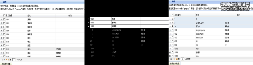 下面是笔者在测试框架中实现的截图自动化对比功能的实际效果。下图中左侧部分是“实际结果截图”、右侧是“预期结果截图”、中间部分是差异对比,测试人员一眼便可看出其中的Bug:“表格行选中的翻页缓存(在当前页选中几条记录,翻到下一页再翻回本页,需要保持之前的行选中状态)功能丢失了”。