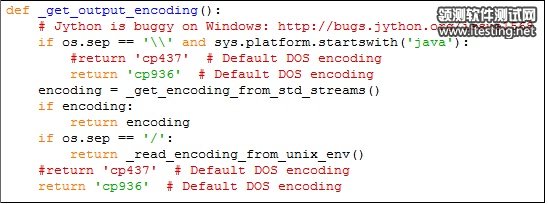 •在[PythonDir]\Lib\site-packages\robot\utils下的encoding.py文件中,找到def _get_output_encoding(): 原来的编码是’cp437’ 将其改成’ cp936’(简体中文,gbk) 。