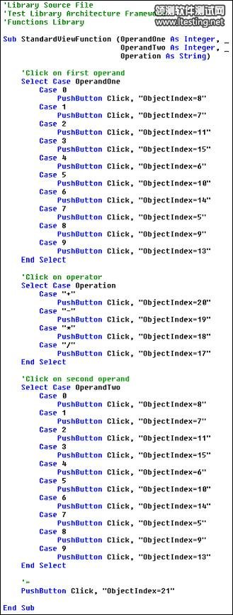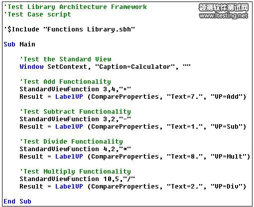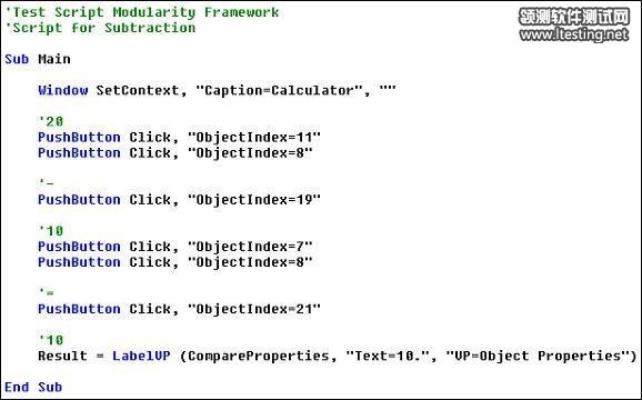 从这个例子中,你能够看到这种框架也产生了高度的模块化,同样增加了测试套件的全面可维护性。就像在测试脚本模块化一样里,如果计算器中的一个控制键移动了,你所要做的只是更改库文件,这样同时也更新了所有调用控制键的脚本。