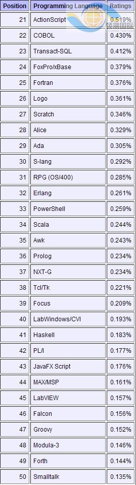 下面是排名21到50的编程语言。