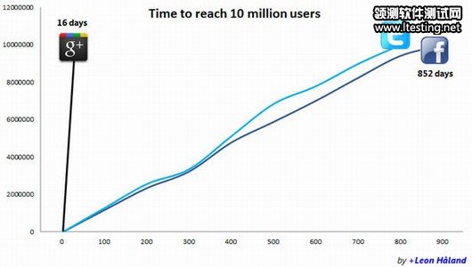 据国外媒体报道,谷歌新社交服务Google+的增速明显超过Twitter和Facebook。Google+用户人数16天内达到1000万,Twitter用户人数780天达到1000万,Facebook用户人数达千耗时852天。
