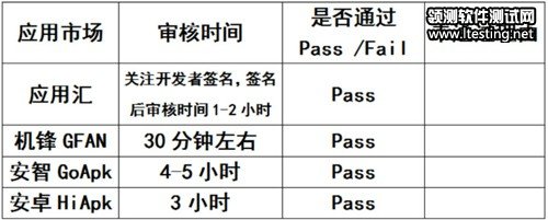 他将“私人通讯录”提交至应用汇、机锋、安智、安卓这四家第三方Android应用市场,在1天之内均通过了审批,具体审批情况如下: