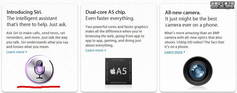 随即,小编去苹果公司官方网站(美国)查找iPhone4s的介绍页面,发现有相关于siri的介绍。