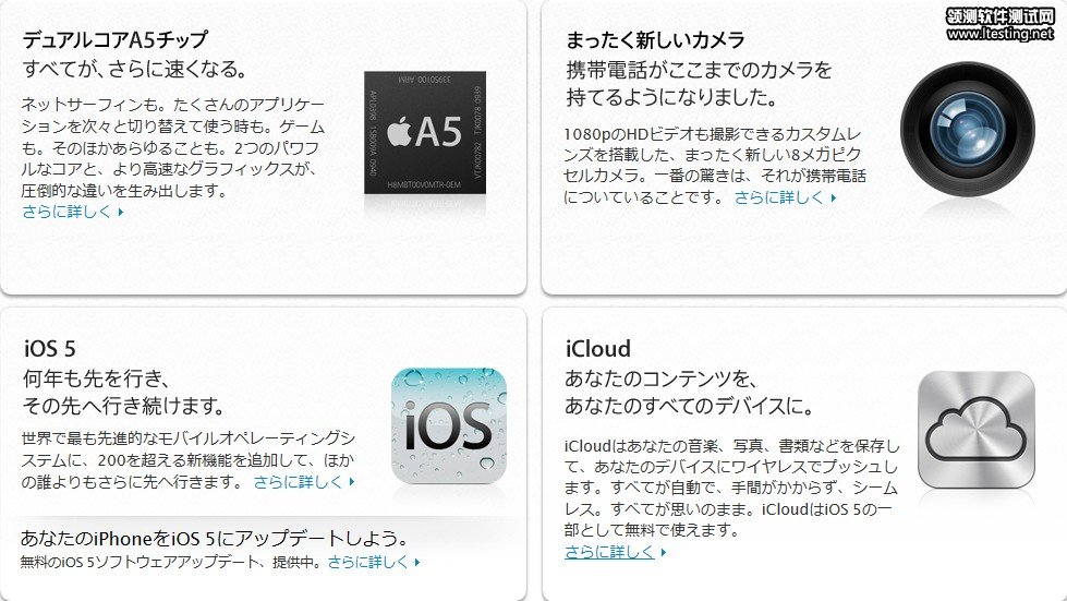 下图:苹果日本官方网站iphone4s的介绍页面(http://www.apple.com/jp/iphone/)