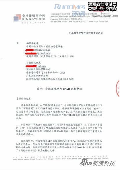 2月20日晚间消息,今日一封苹果公司致深圳唯冠创始人杨荣山的律师函件,题为《关于:中国大陆境内iPad商标争议》。在律师函中,苹果称“深圳唯冠对商标转让毫不知情”等言论失实,深圳唯冠全程参与了iPad中国商标转让。