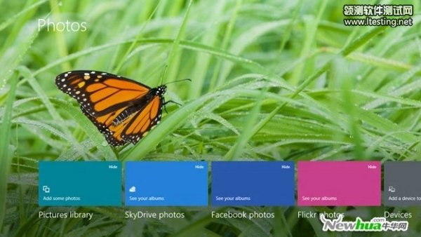Windows 8引入全新的拍照应用程序,支持从各种来源,如社交网站Facebook、Flickr上进入快照模式,还能够查看保存在SkyDrive上的照片。