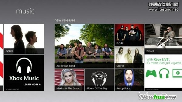 就像新的Movie Store一样,Zune音乐商店中,你可以访问并购买音乐类容。结合全新的Metro风格用户界面,加上活动瓷砖界面,用户可以定制属于自己的风格、艺术家和歌曲。