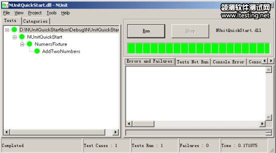 按Run按钮。树的节点变为绿色,而且测试运行器窗口上的进度条变绿,绿色代表成功通过。