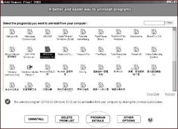 Windows的“添加/删除程序”中,而且它也不能彻底地把安装目录或注册表项目删除干净。因此我们要用Add/Remove Plus!2003完全、彻底地把应用软件删除掉。