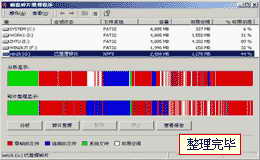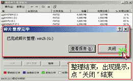整理的过程中可以看到文件的分布变化和整个进度。整理结束后,会出现提示,点“关闭”结束。(见图六)