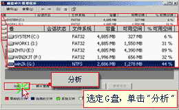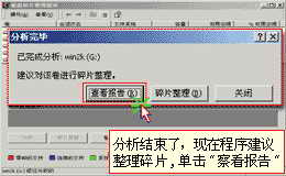在后面的“分析”栏中还可以看到文件的分布情况,红色的部分就是零散的文件,白色的地方是空白区域。我们还可以看一下分析报告,单击“察看报告”。(见图四)