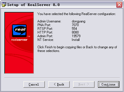 接下来输入用户名,和密码,这是你进入RealServer管理界面的密码,所以一定要记住了。