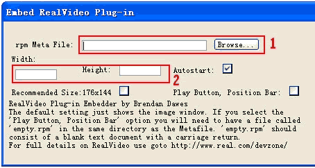 单击图标后会弹出一个对话框。在第一个浏览框中,输入流媒体文件的地址,就是前面提到的:rtsp://dongyang:15437/*.rm。第二组框中,可以设置音视频文件播放的宽度和高度,一般在网页中的视频窗口大小为 400px×300px。点击确定后,就可以了,此时我们预览一下,就真正在网页中实现了流媒体播放了。