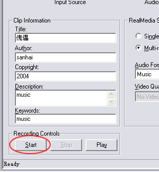 然后选择输出流媒体文件的存储位置,确认后,就会回到RealProducer的主页面,这时我们会发现左下角的Start按钮可以点击了,单击后转换就开始了。