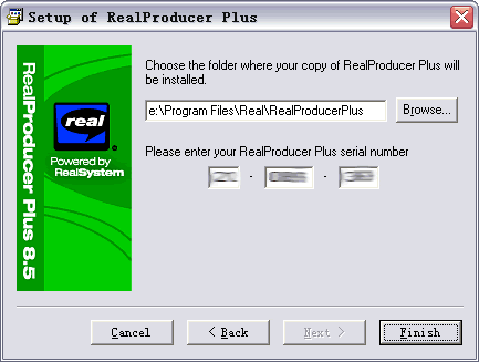 接下来们就该安装服务器端的软件了,就是RealProducer和RealServer。首先我们来安装RealProducer。同样双击安装图标,弹出安装窗口。接下来弹出的对话框可以选择软件安装的路径,下面让我们输入的是购买产品的序列号。