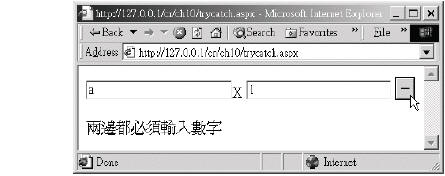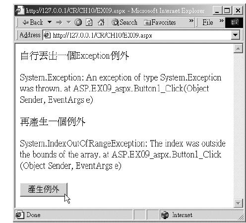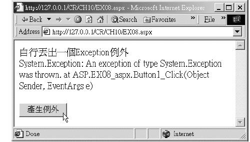 Response.Write("自行丢出一个Exception 例外<Br>")