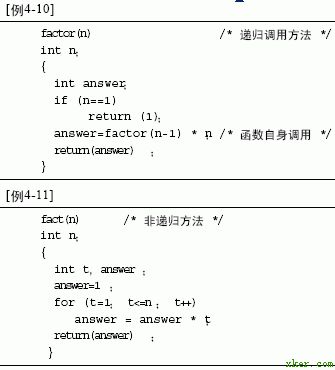 C语言函数可以自我调用。如果函数内部一个语句调用了函数自己,则称这个函数是“递归”。递归是以自身定义的过程。也可称为“循环定义”。