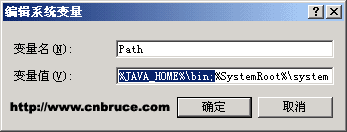 系统变量:PATH 的新值是在原有值前加上%JAVA_HOME%\in;
